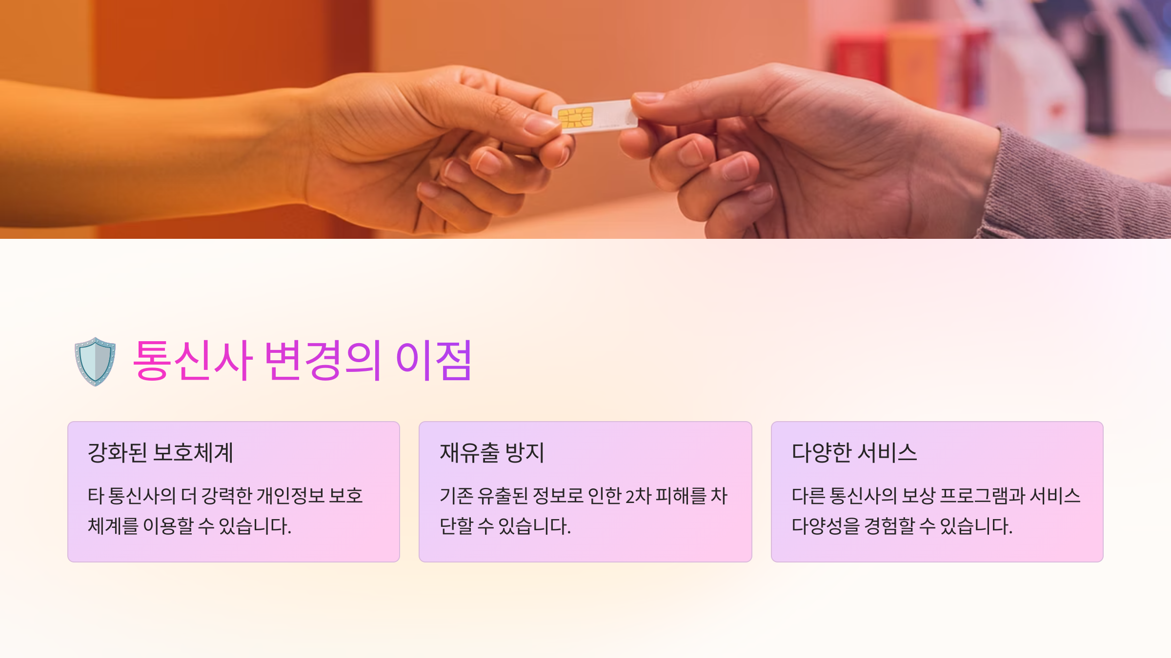 첫 번째, 기존 통신사에 남아 있는 개인정보로 인한 추가 피해를 차단할 수 있어요. 새로운 통신사로 이동하면서 고객 정보가 새로 등록되니까요.