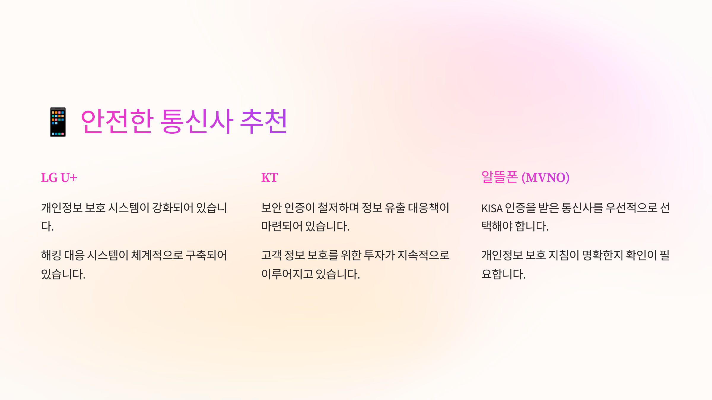 이렇게 보면 통신사 변경은 단순한 선택이 아니라, 내 개인정보를 지키고 생활비까지 아낄 수 있는 똑똑한 결정이에요!🔒✨