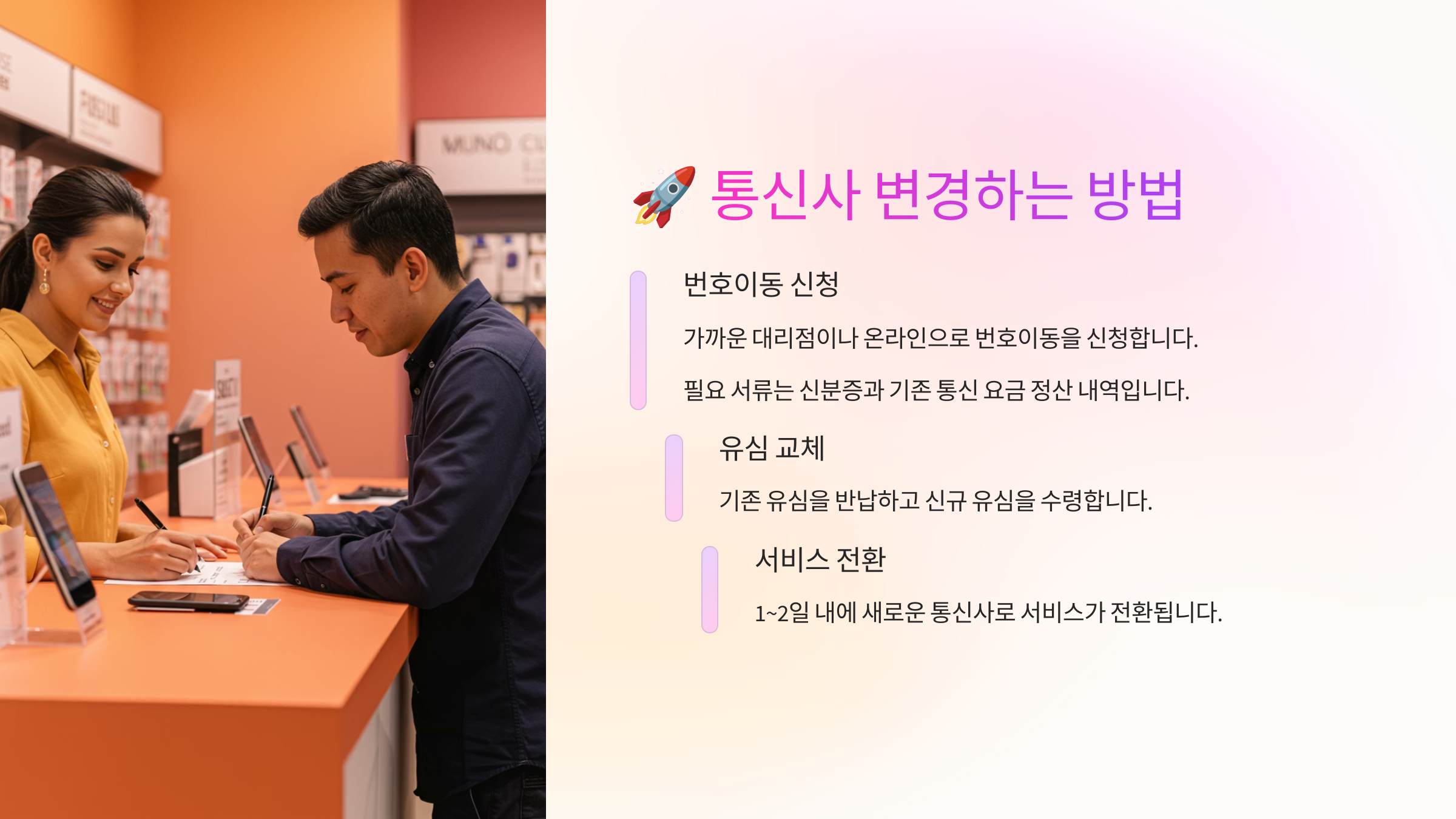 통신사 변경은 생각보다 훨씬 간단해요. 스마트폰으로 몇 번 클릭만 하면 끝낼 수 있답니다!📱