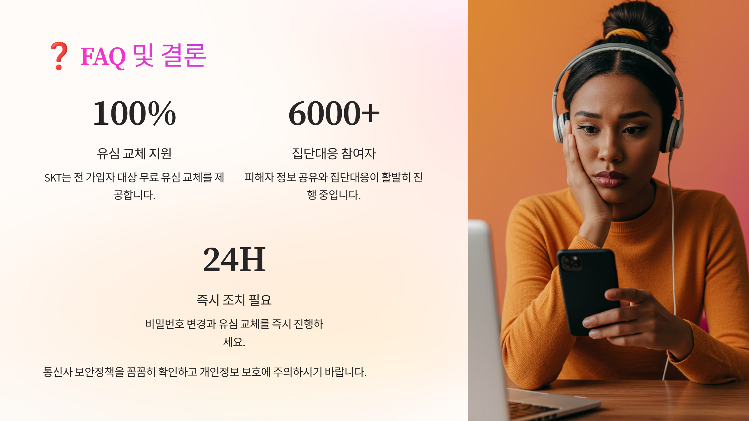 SKT는 공식 사과와 함께 피해 고객을 대상으로 신용 모니터링 서비스를 제공하고 있지만, 이미 유출된 정보는 돌이킬 수 없어요.